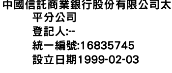 中國信託商業銀行股份有限公司太平分公司