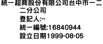 統一超商股份有限公司台中市一二二分公司