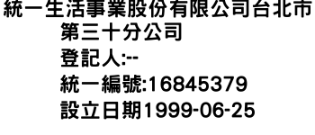 統一生活事業股份有限公司台北市第三十分公司