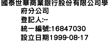 國泰世華商業銀行股份有限公司學府分公司