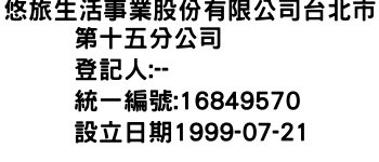 悠旅生活事業股份有限公司台北市第十五分公司