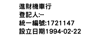 統一編號:01721147