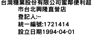 台灣糖業股份有限公司蜜鄰便利超市台北興隆直營店