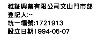 雅証興業有限公司文山門市部