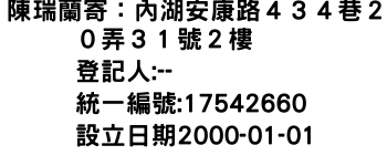 陳瑞蘭寄:內湖安康路434巷20弄31號2樓