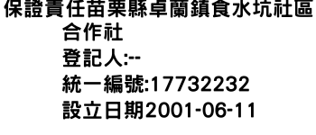 保證責任苗栗縣卓蘭鎮食水坑社區合作社