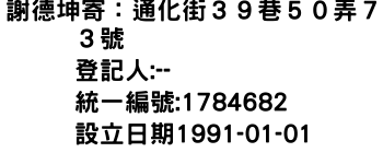 謝德坤寄:通化街39巷50弄73號
