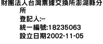 臺北市中山區建國北路2段3巷15號2樓財團法人台灣票據交換所澎湖縣分所-統編:18235063