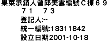 果菜承銷人曾邱美雲編號C棟69丶71丶73