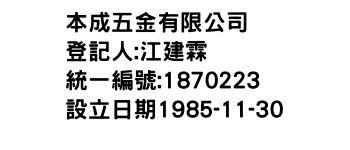 本成五金有限公司