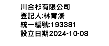 臺南市後壁區頂安里頂寮106之16號1樓川合杉有限公司-統編:00193381