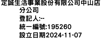 定誠生活事業股份有限公司中山店分公司
