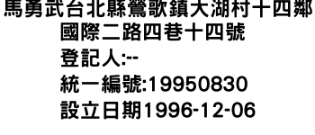 馬勇武台北縣鶯歌鎮大湖村十四鄰國際二路四巷十四號