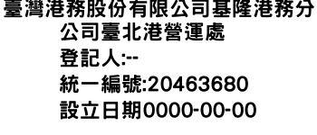臺灣港務股份有限公司基隆港務分公司臺北港營運處-統編:20463680