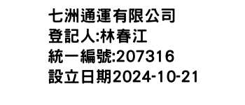 臺北市內湖區洲子街68號2樓七洲通運有限公司-統編:00207316