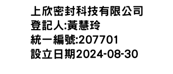 臺北市士林區承德路4段12巷39號1樓上欣密封科技有限公司-統編:00207701