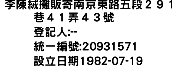 李陳絨攤販寄南京東路五段291巷41弄43號
