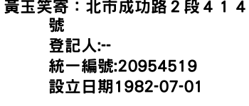 黃玉笑寄:北市成功路2段414號