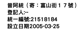 曾阿統(寄:富山街17號)