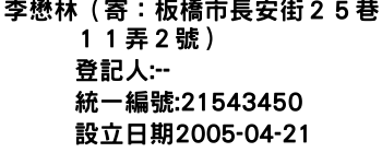 李懋林(寄:板橋市長安街25巷11弄2號)