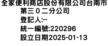 全家便利商店股份有限公司台南市第三0二分公司