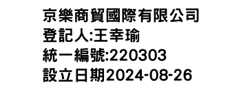新北市永和區中正路150號京樂商貿國際有限公司-統編:00220303