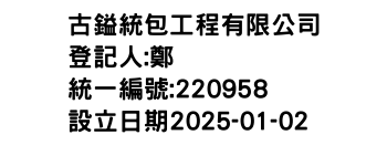 桃園市平鎮區新榮里榮興街143巷1號7樓古鎰統包工程有限公司-統編:00220958