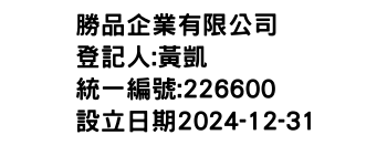 臺中市太平區平安里鵬儀路214巷6弄8-20號1樓勝品企業有限公司-統編:00226600