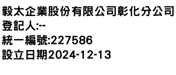 毅太企業股份有限公司彰化分公司-統編:00227586