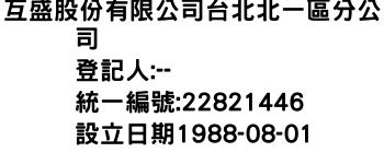 互盛股份有限公司台北北一區分公司
