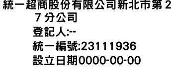 統一超商股份有限公司新北市第27分公司