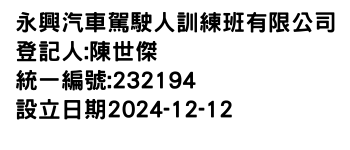 雲林縣古坑鄉水碓村水碓185-20號永興汽車駕駛人訓練班有限公司-統編:00232194