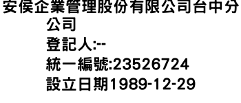 安侯企業管理股份有限公司台中分公司