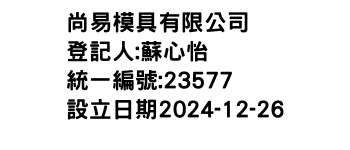 臺南市永康區復國里018鄰復國二路110巷1號1樓尚易模具有限公司-統編:00023577
