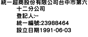 臺中市神岡區神岡里中正路16號統一超商股份有限公司台北市第一二四七分公司-統編:00066688