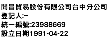 開昌貿易股份有限公司台中分公司
