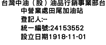 台灣中油(股)油品行銷事業部台中營業處田尾加油站