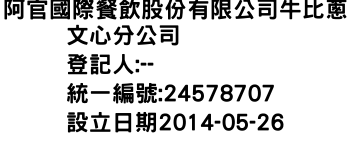 阿官國際餐飲股份有限公司牛比蔥文心分公司