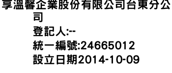 享溫馨企業股份有限公司台東分公司