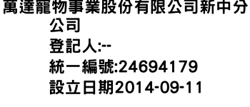 萬達寵物事業股份有限公司新中分公司