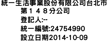 統一生活事業股份有限公司台北市第148分公司