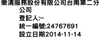 樂清服務股份有限公司台南第二分公司