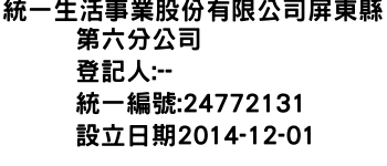 統一生活事業股份有限公司屏東縣第六分公司