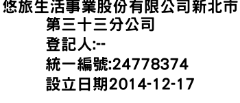 悠旅生活事業股份有限公司新北市第三十三分公司