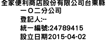 全家便利商店股份有限公司台東縣一O二分公司
