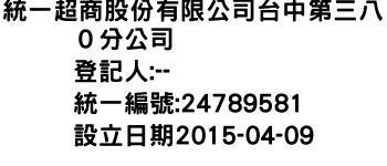 統一超商股份有限公司台中第三八0分公司