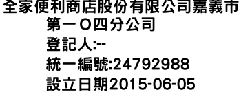 全家便利商店股份有限公司嘉義市第一O四分公司