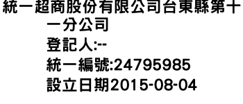 統一超商股份有限公司台東縣第十一分公司