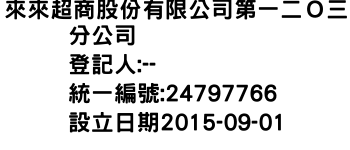 來來超商股份有限公司第一二O三分公司