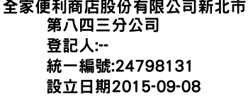 全家便利商店股份有限公司新北市第八四三分公司